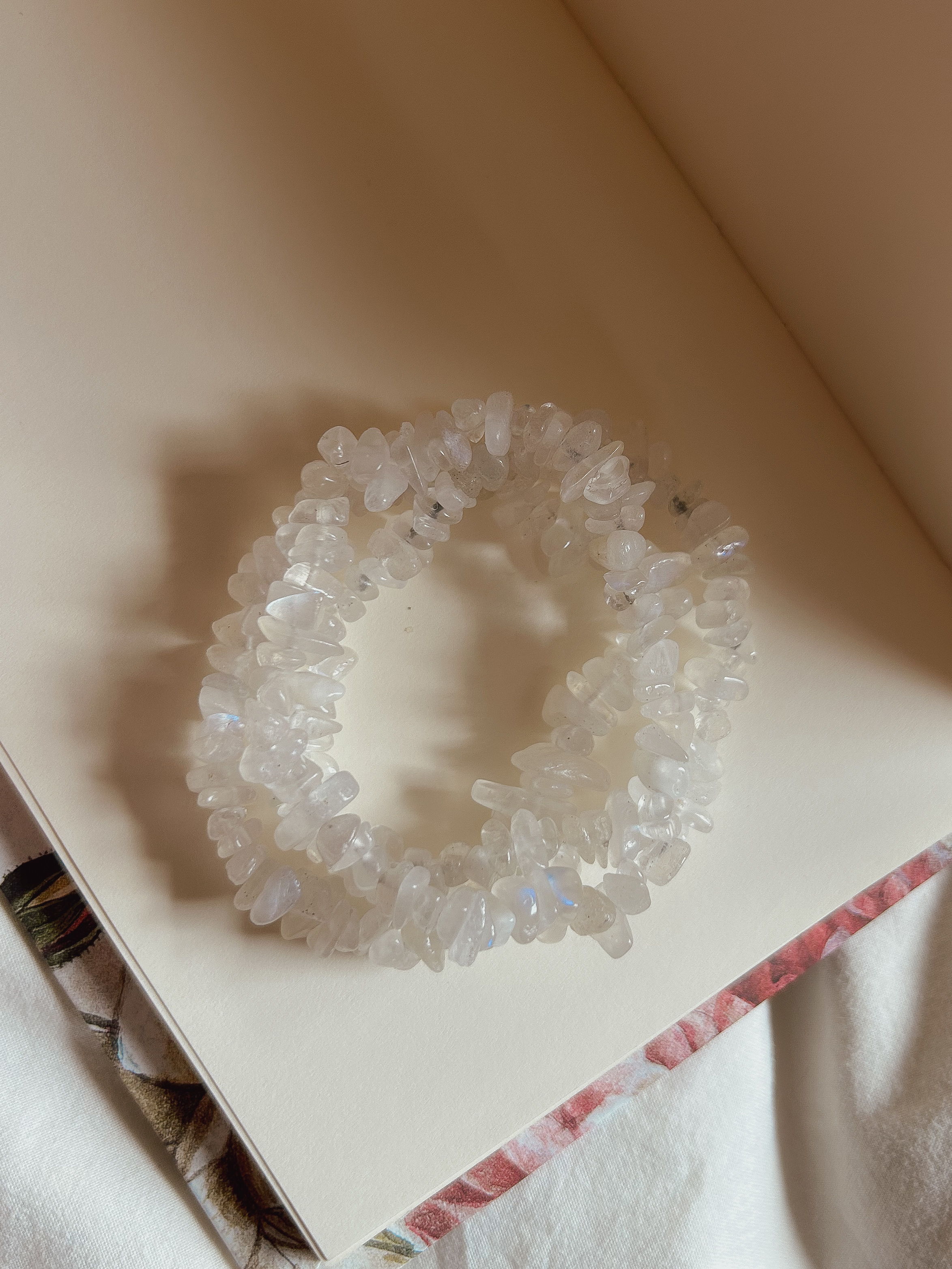 Pietra di Luna, la pietra legata alle energie lunari, positiva per l'equilibrio dell'umore e degli ormoni.