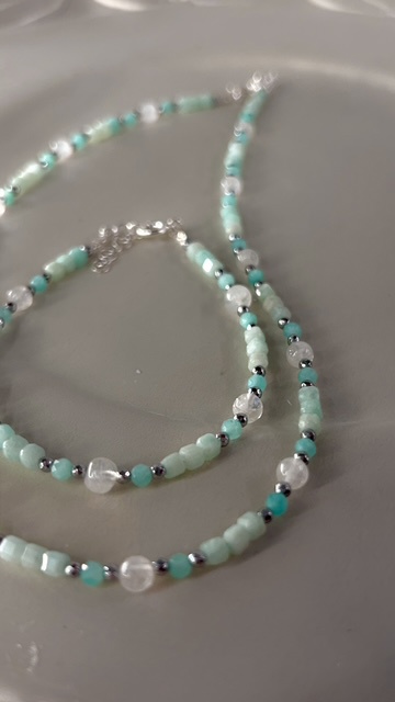 Collana girocollo in pietra dura con Amazzonite cubica e sfaccettata,