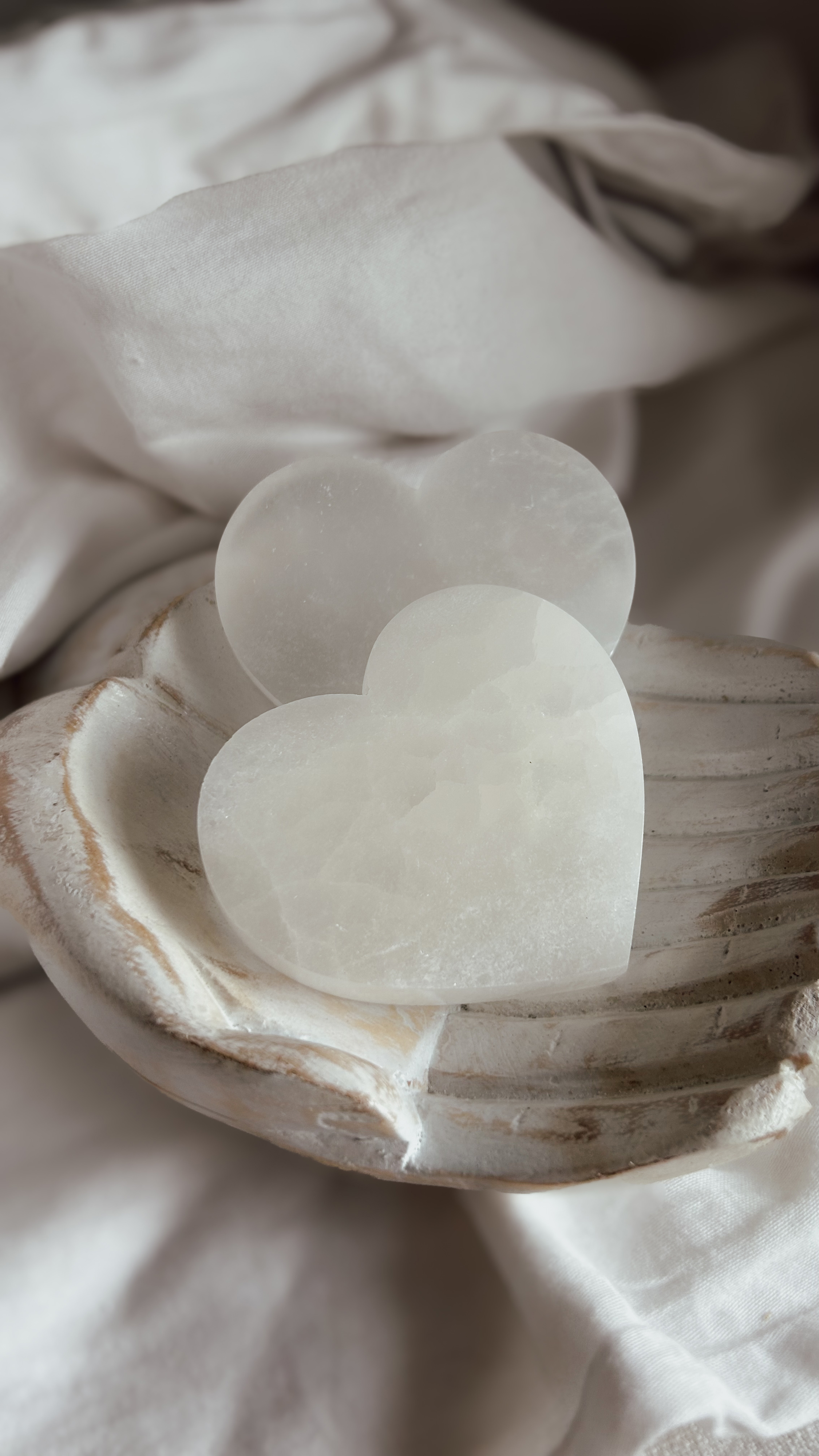 Hai appena aggiunto Cuore piatto in Selenite tuo al carrello.