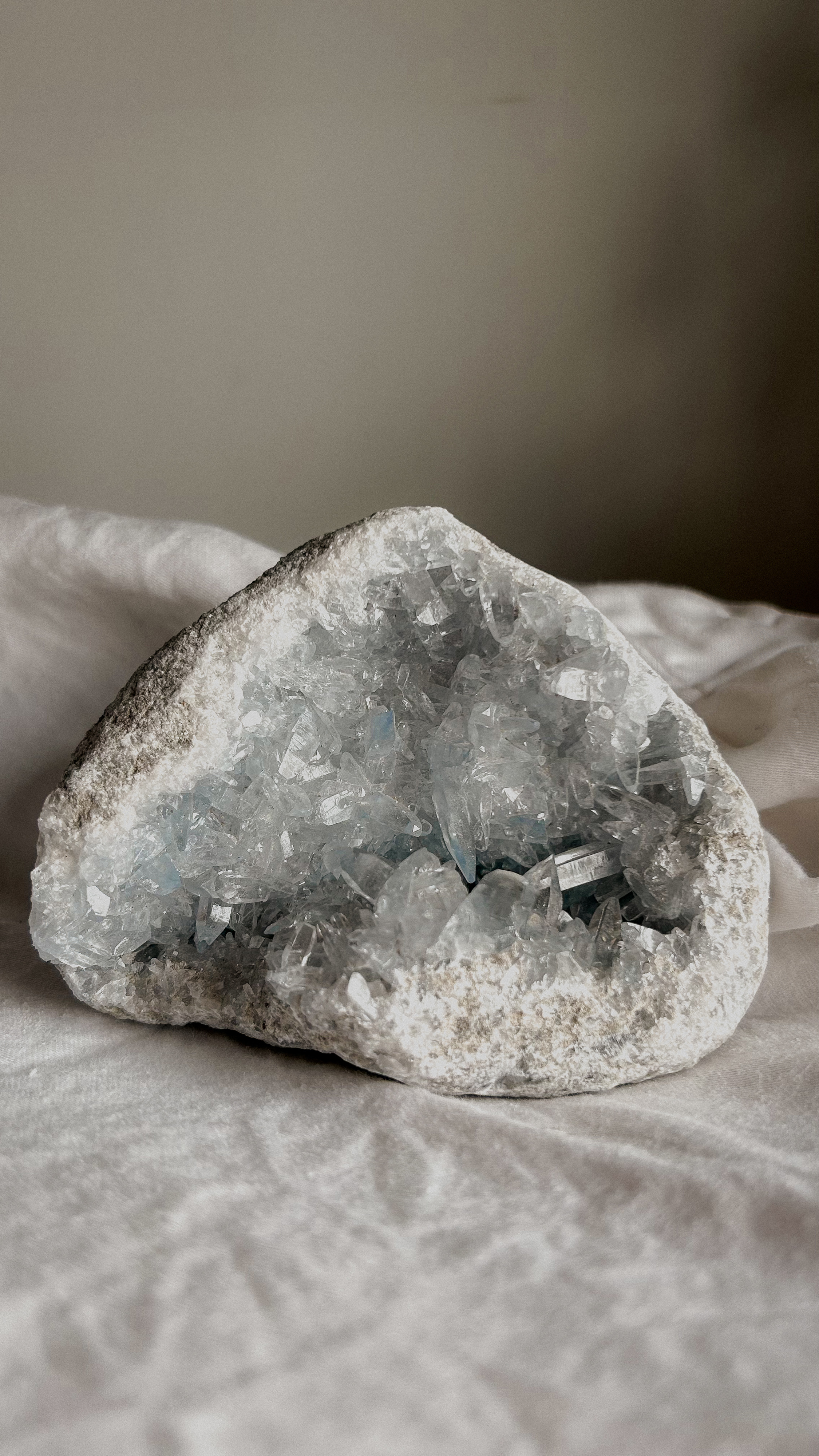 Geode naturale di Celestina dal Madagascar. Pezzo unico.
